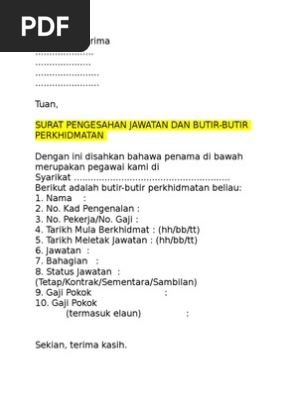Surat Pengesahan Kerja : Contoh Surat Pengesahan Jawatan : Koleksi