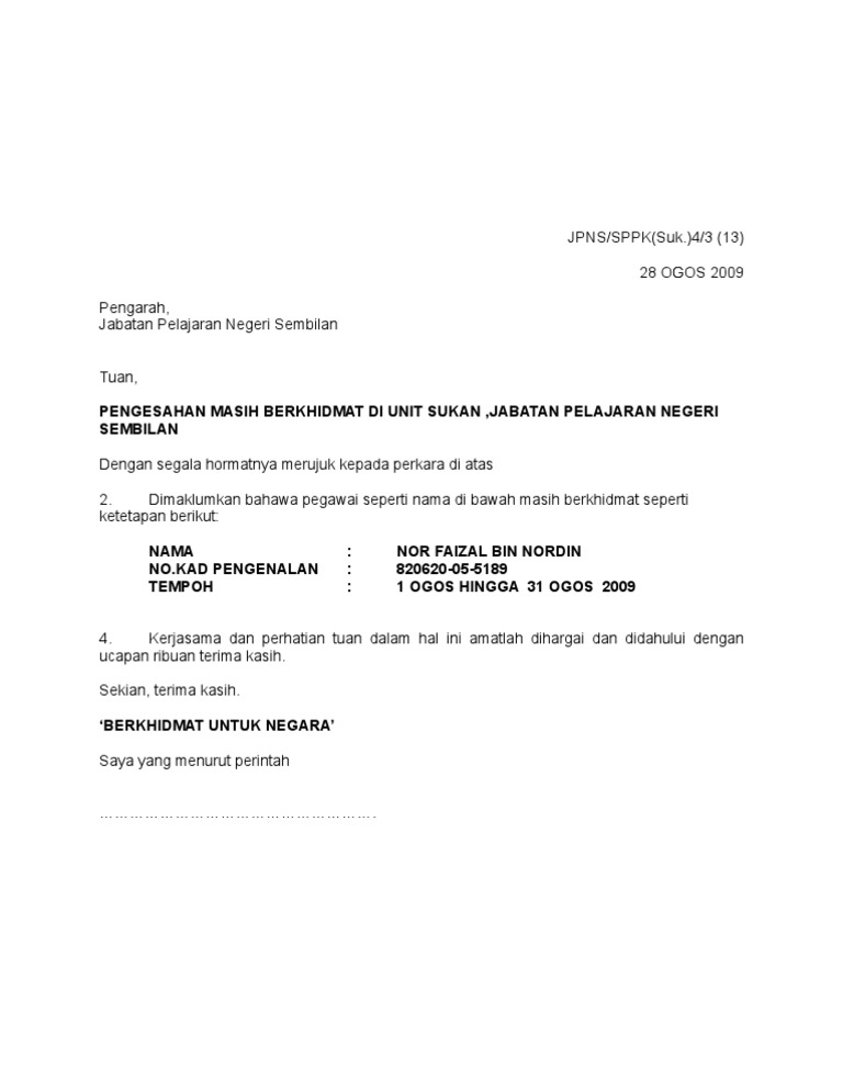 Contoh Surat Rasmi Pengesahan Jawatan English Version