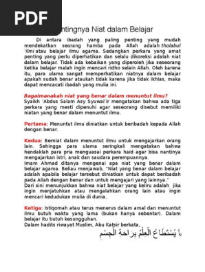 Pentingnya Niat Dalam Belajar PDF